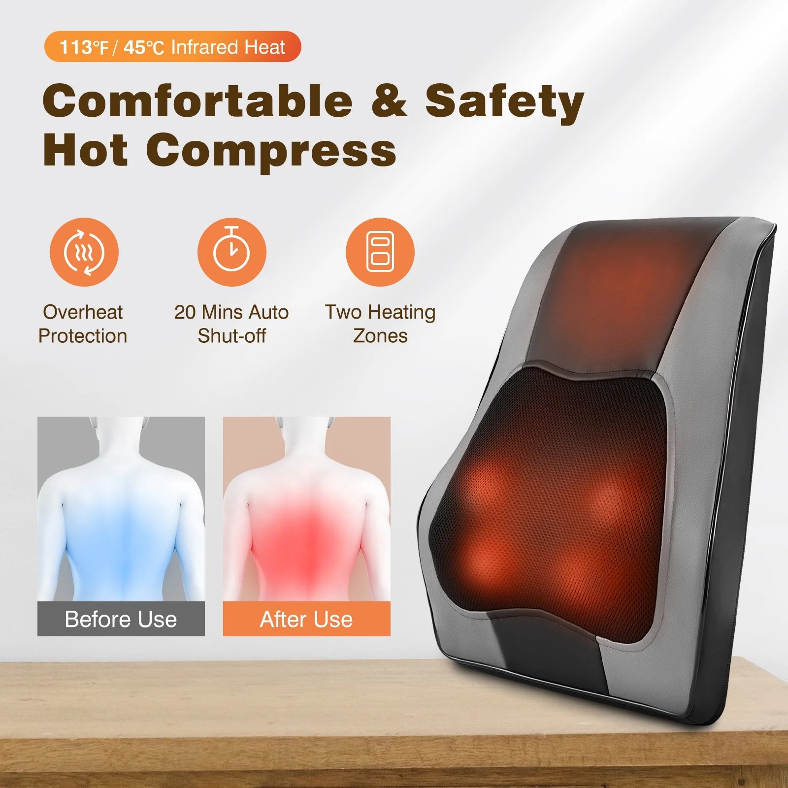 Back Massager with Heat, Shiatsu Neck & Back Massager Pillow for Pain Relief, 3D Kneading Massage Cushion for Back, Neck, Shoulder Muscle Relaxation, Ideal Gifts for Mom Women, Gray