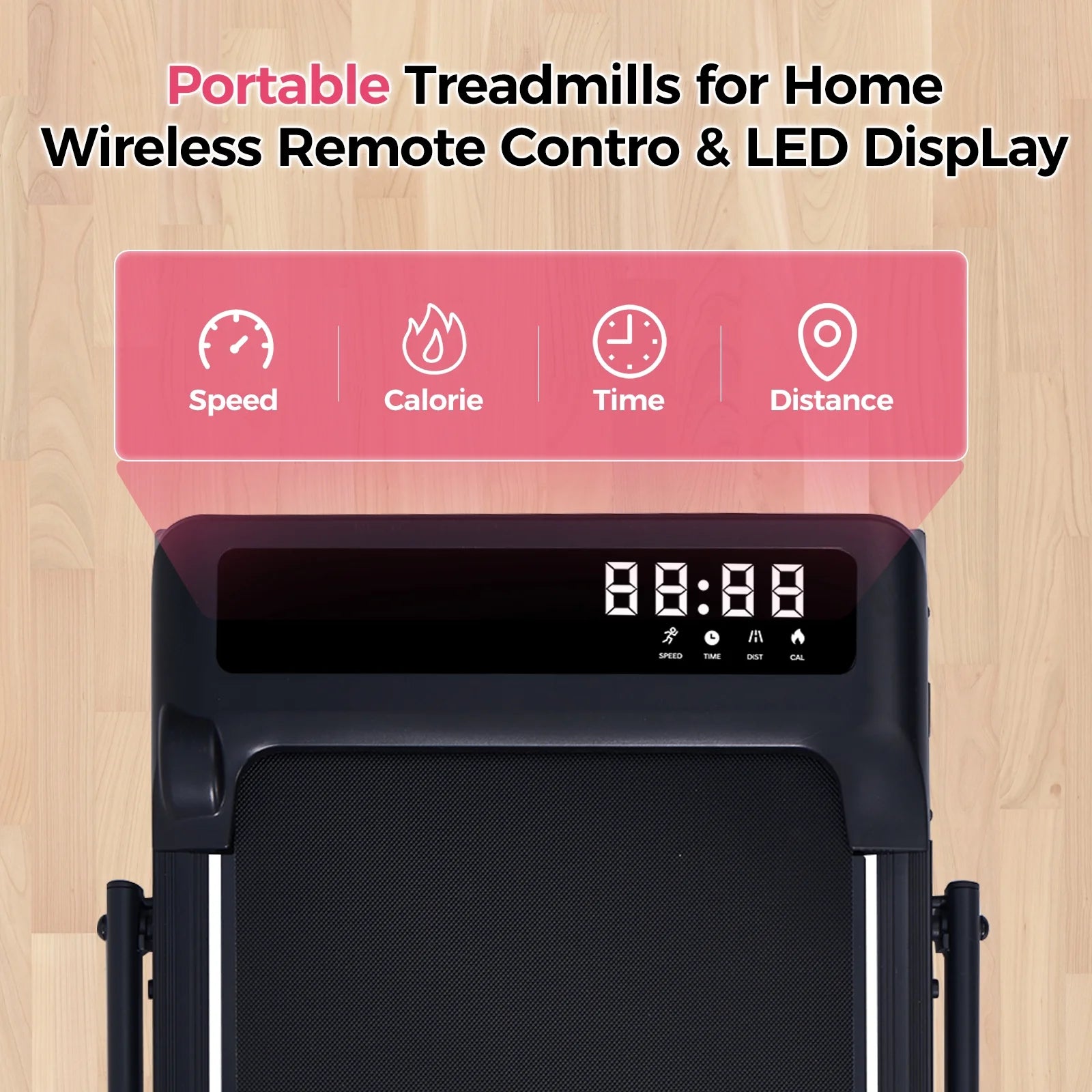 Folding Treadmill with Handles for Home Workouts,Portable Treadmill Compact under Desk Foldable Walking Pad Treadmills with LED Display,320Lbs Capacity
